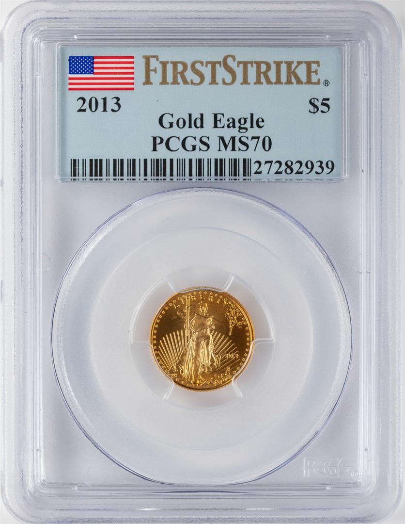 2013 $5 American Gold Eagle Coin PCGS MS70 First Strike