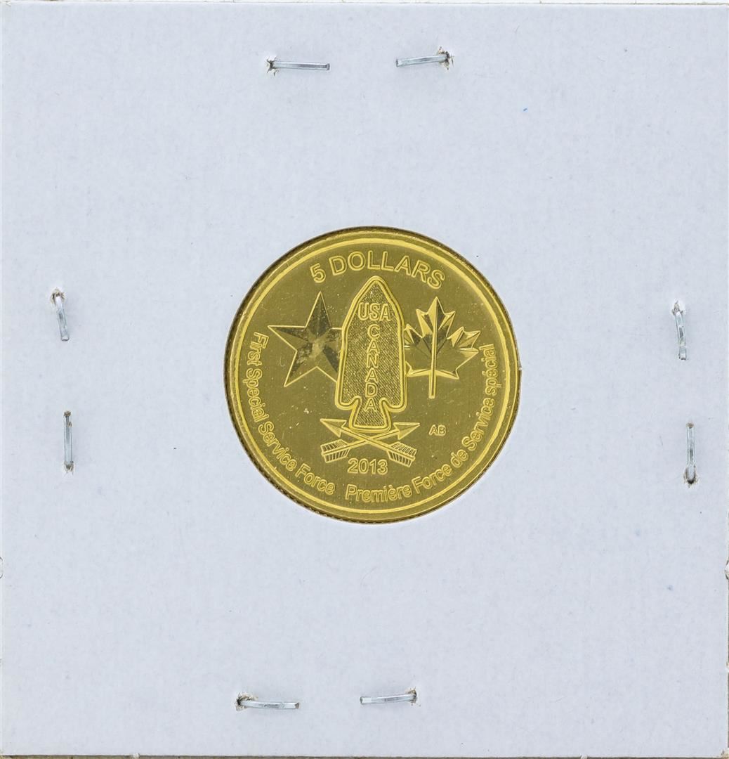 One 2013 $5 Canada 1/4 oz. First Special Service Force .9999 Fine Gold Coin.