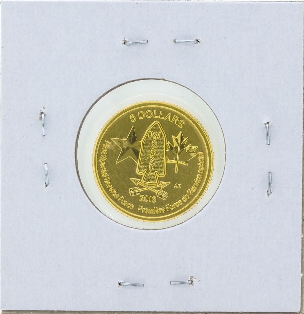 One 2013 $5 Canada 1/4 oz. First Special Service Force .9999 Fine Gold Coin.