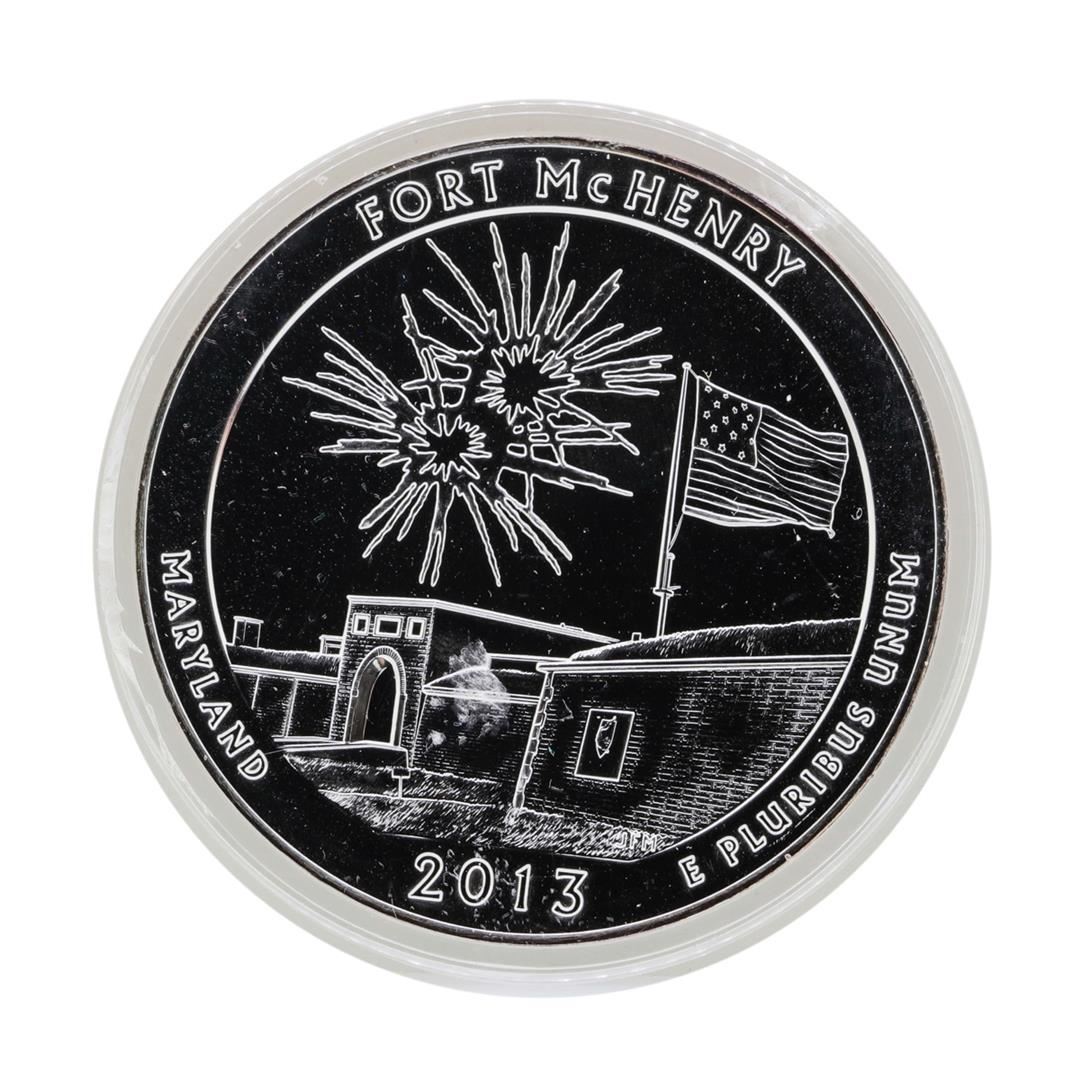 One 2013 5oz Silver ATB Fort McHenry Maryland Silver Coin.