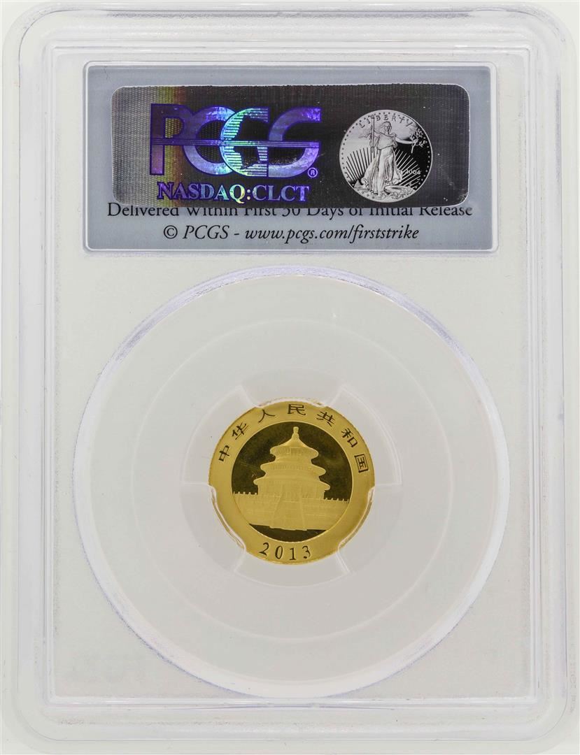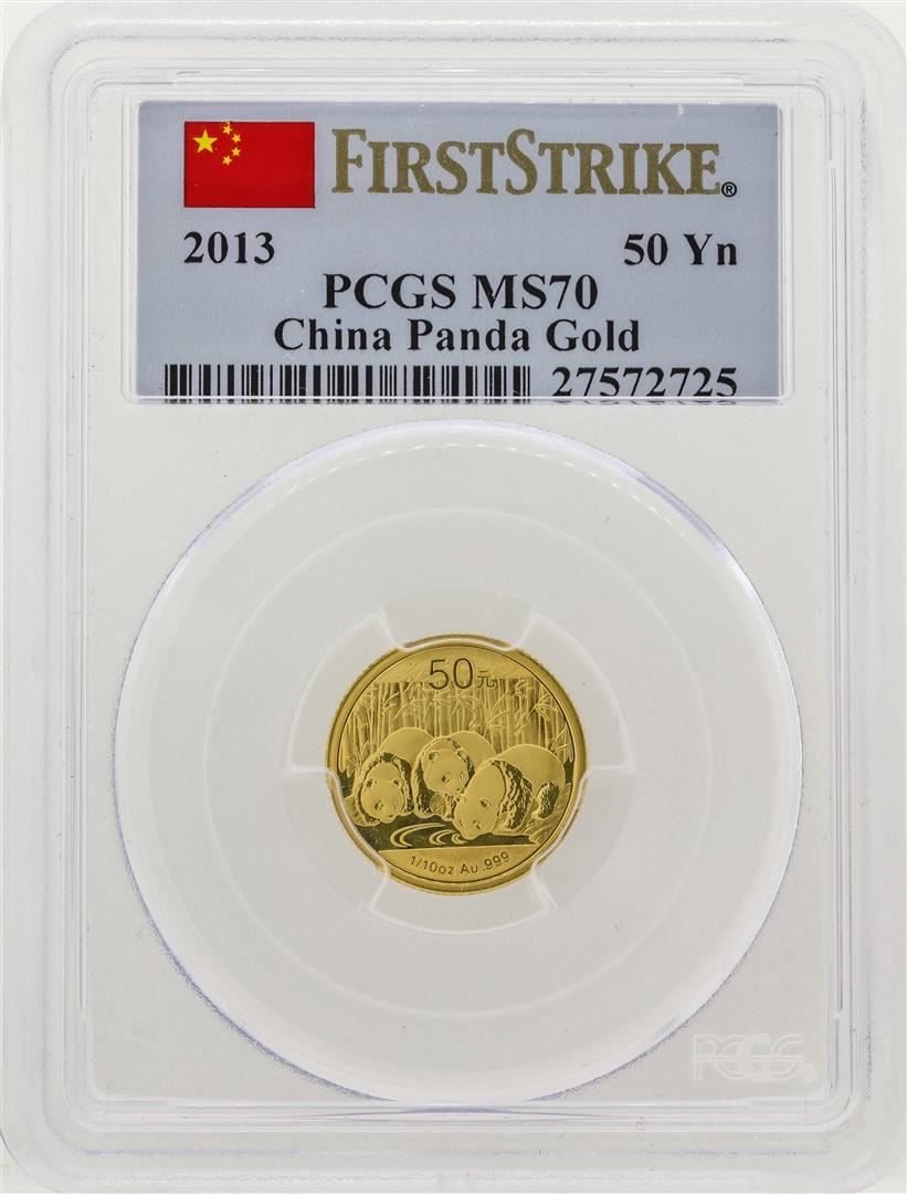 One 2013 China 1/10 oz. Panda Gold Coin PCGS MS70 First Strike. PCGS Graded.