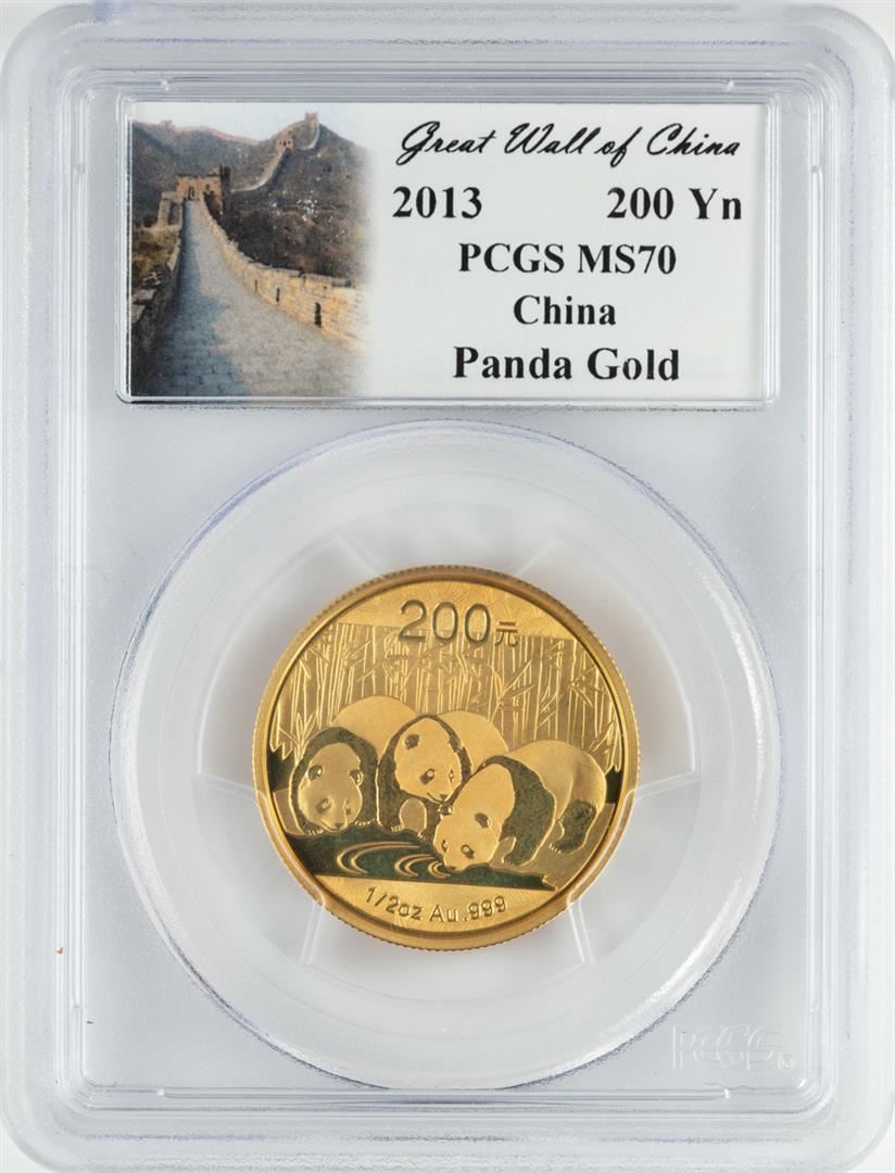 One 2013 China 1/2 oz Gold Panda 200 Yuan Coin PCGS MS70. PCGS Graded.