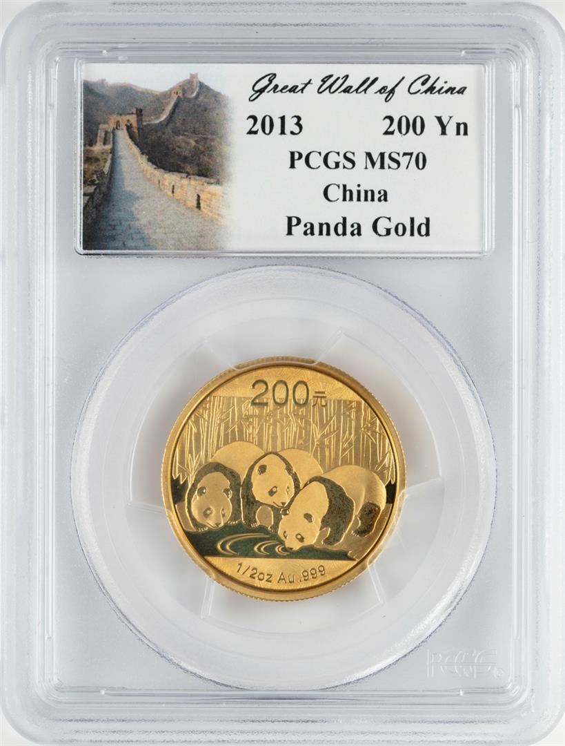 One 2013 China 1/2 oz Gold Panda 200 Yuan Coin PCGS MS70. PCGS Graded.