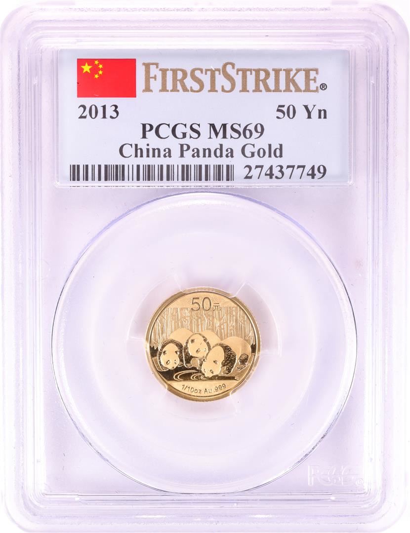 2013 China 50 Yuan 1/10 oz Gold Panda Coin PCGS MS69 First Strike
