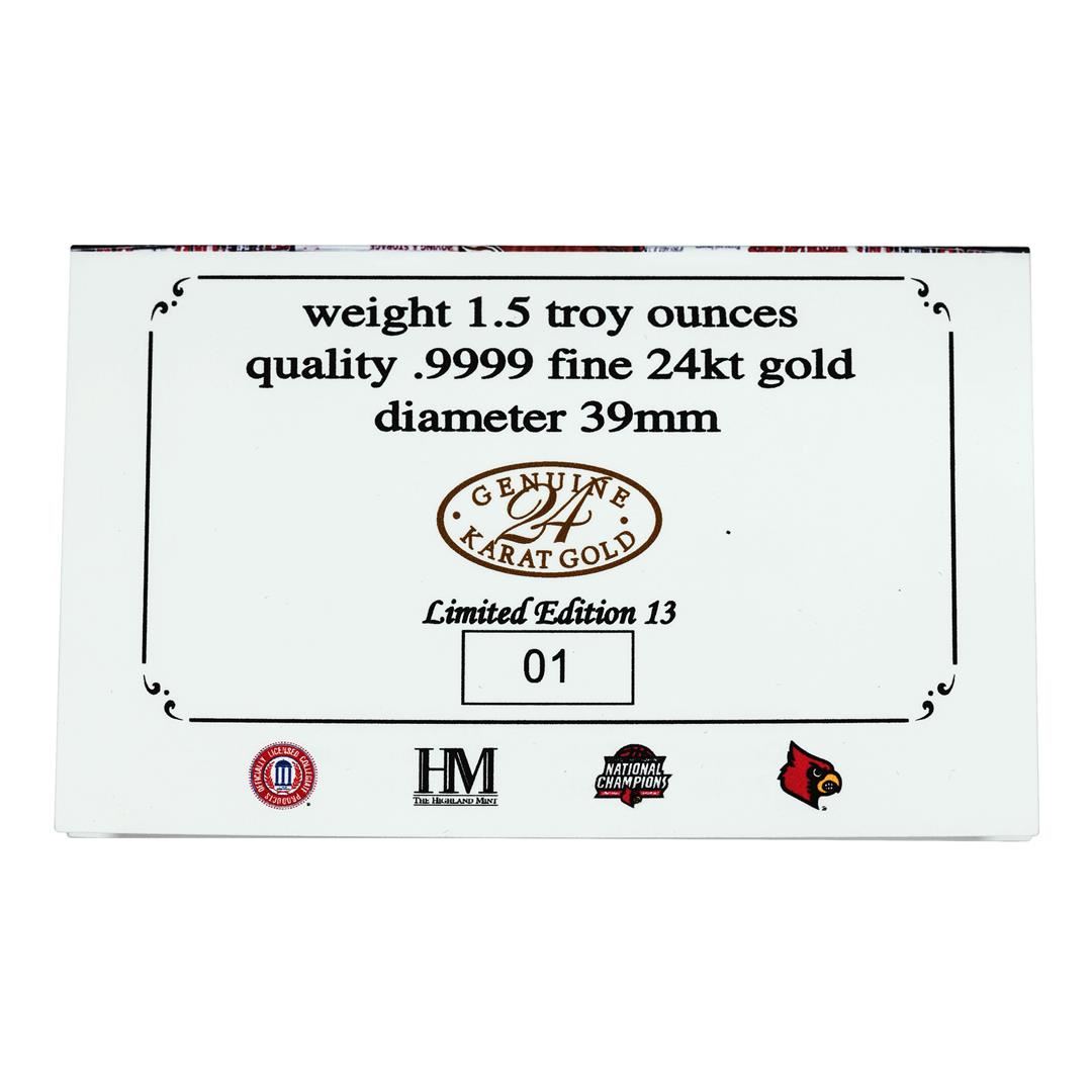 One 2013 Louisville National Champions 1.5 oz 24kt Gold Medal Limited Edition 1 of 13.