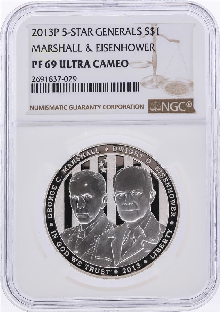 One 2013-P $1 5-Star Generals Marshall & Eisenhower NGC PF69 Ultra Cameo. NGC Certified.