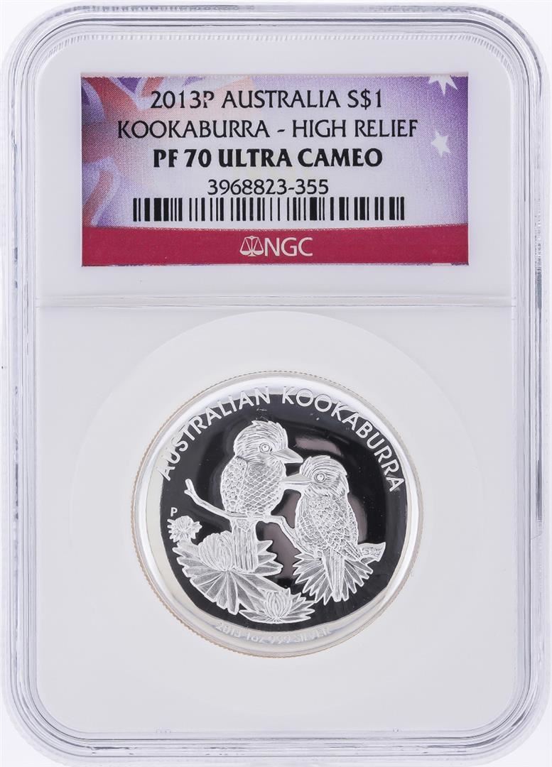 One 2013-P $1 Australia Kookaburra High Relief Release NGC PF70 Ultra Cameo. NGC Certified.