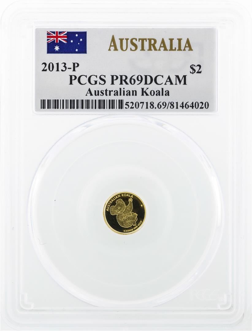 One 2013-P $2 Australia Mini Koala Gold Coin PCGS PR69DCAM. PCGS Graded.