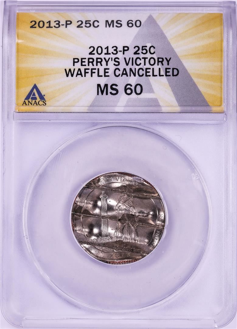 One 2013-P Perry's Victory ATB Quarter Waffle Cancelled Coin ANACS MS60. ANACS Certified.