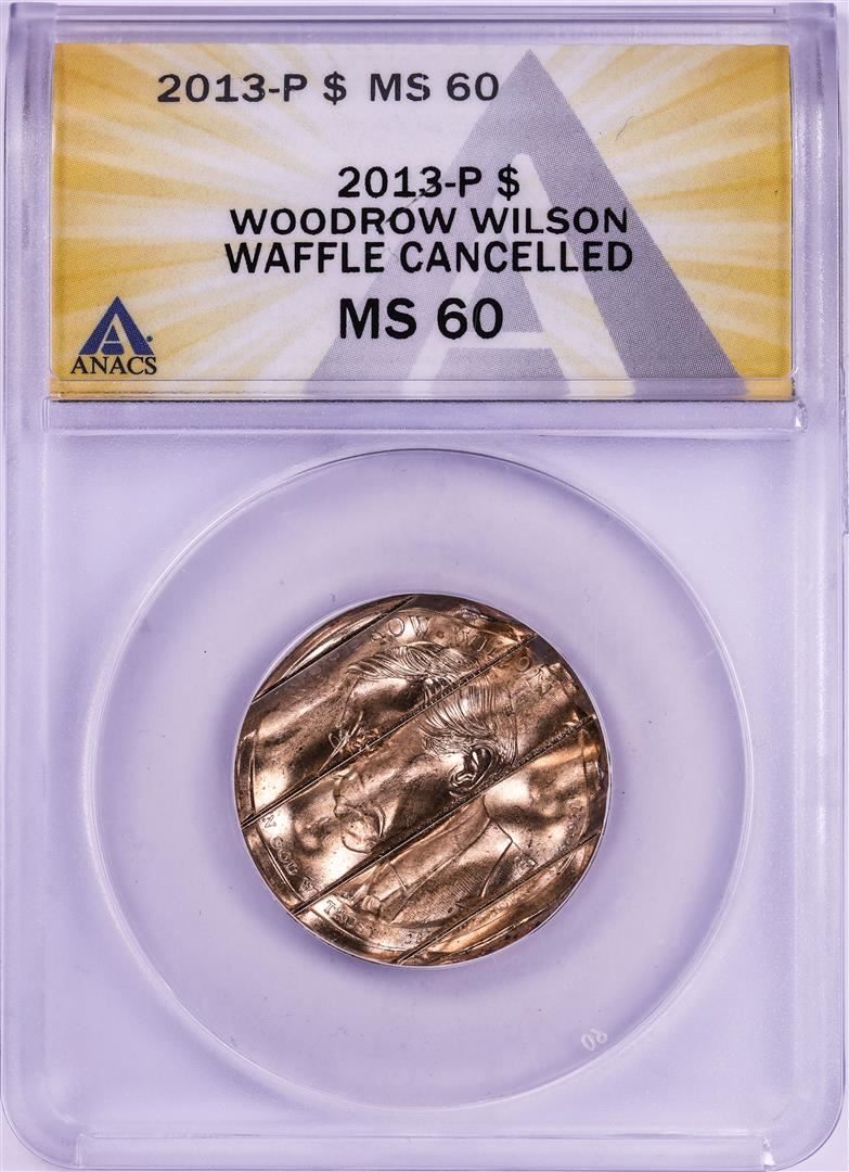 2013-P Woodrow Wilson Presidential Dollar Waffle Cancelled Coin ANACS MS60