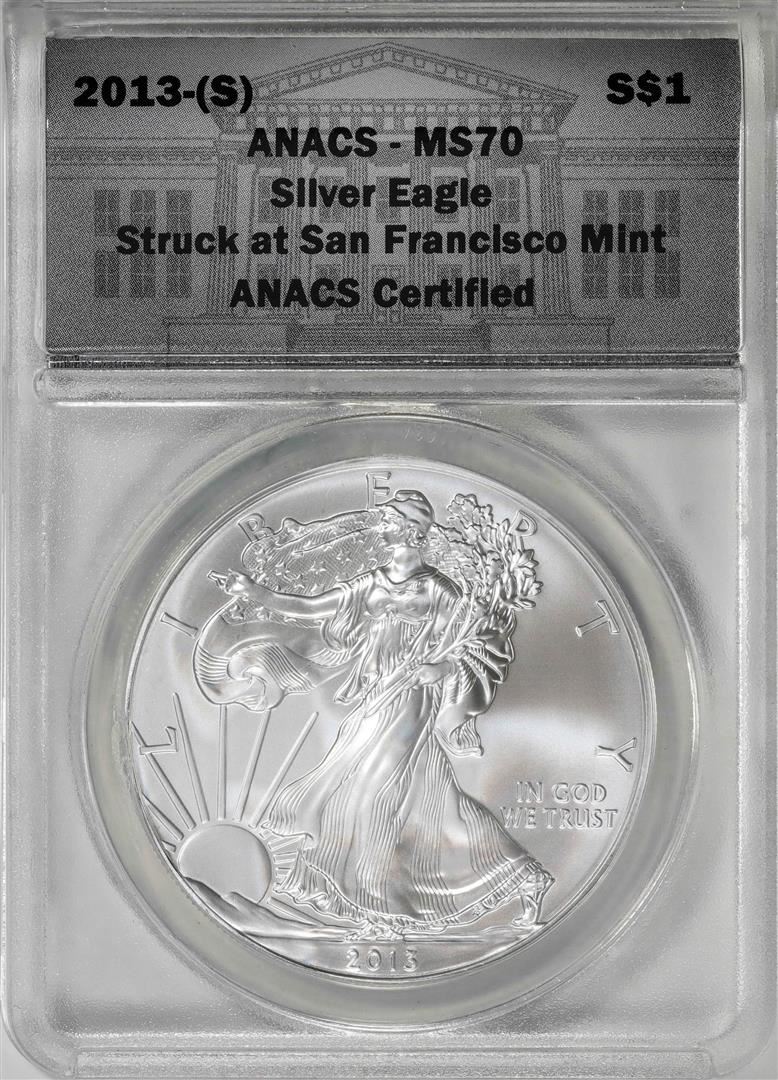 2013-(S) $1 American Silver Eagle Coin ANACS MS70 Struck at San Francisco