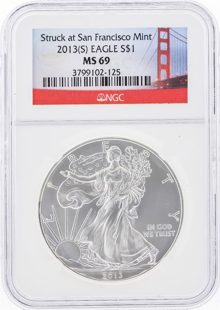 One 2013-S $1 American Silver Eagle Coin NGC Graded MS69. NGC Certified.