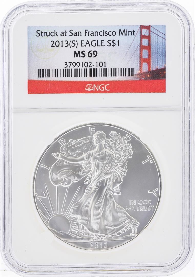 One 2013-S $1 American Silver Eagle Coin NGC Graded MS69. NGC Certified.