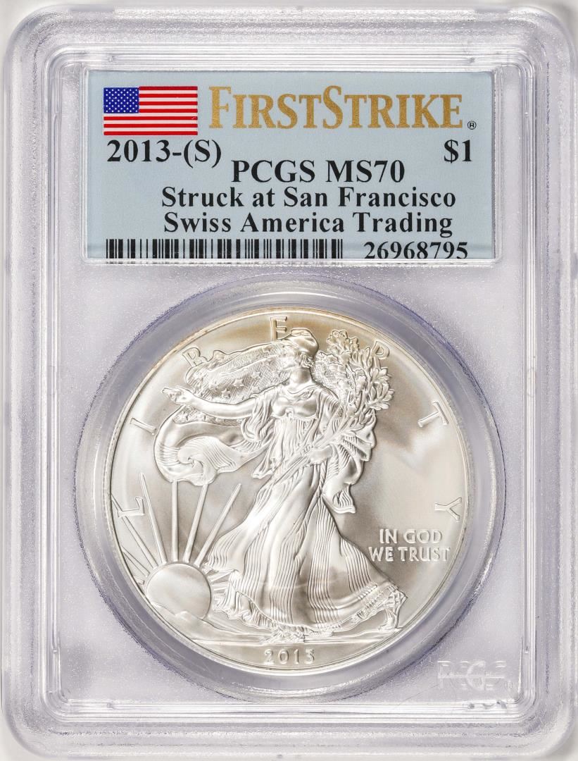 2013-(S) $1 American Silver Eagle Coin PCGS MS70 San Francisco Mint First Strike