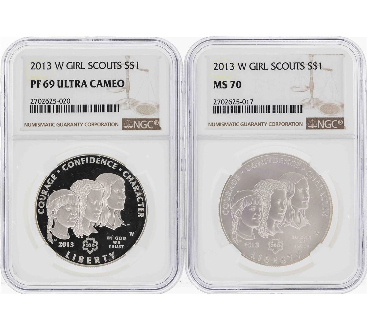 2013-W $1 Girl Scouts Commemorative Silver Coins NGC MS70 & PF69 Ultra Cameo