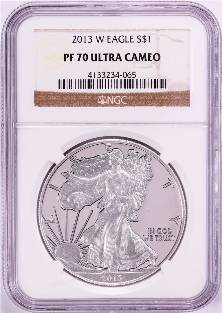 One 2013-W $1 Proof American Silver Eagle Coin NGC PF70 Ultra Cameo. NGC Certified.
