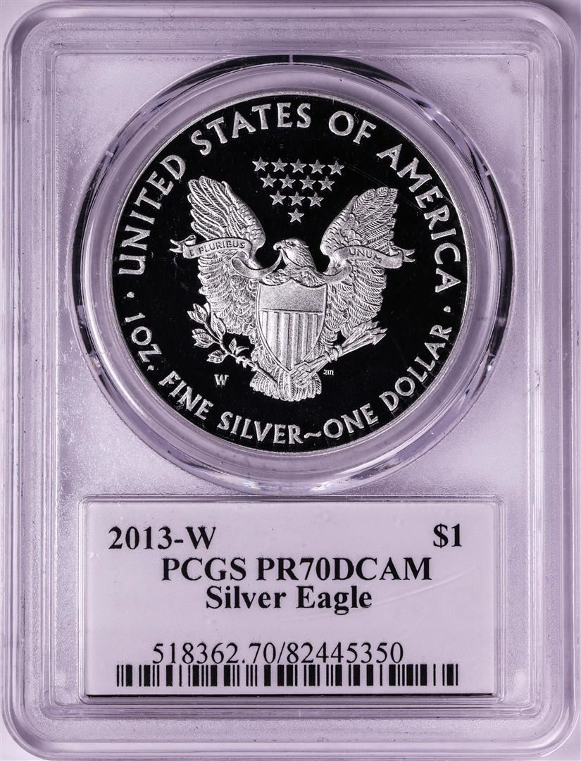 One 2013-W $1 Proof American Silver Eagle Coin PCGS PR70DCAM Mercanti Signature. PCGS Graded.