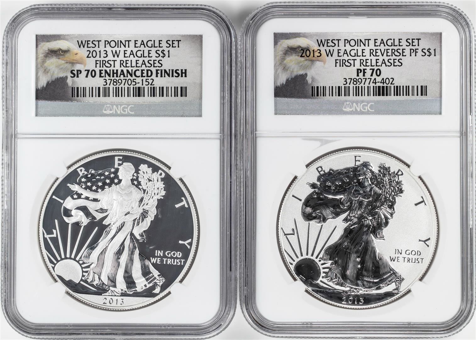 2013-W $1 West Point Proof Silver Eagle Coin Set NGC PF70/SP70 First Releases