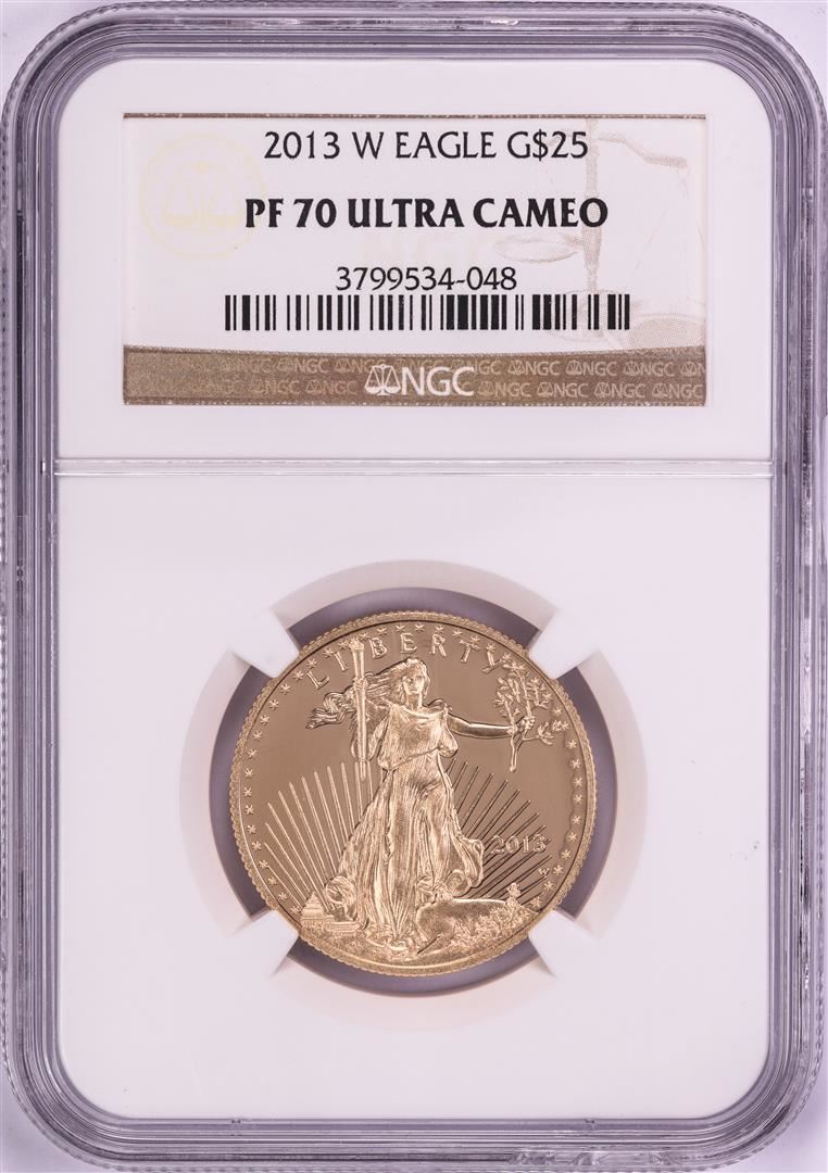One 2013-W $25 Proof American Gold Eagle Coin NGC PF70 Ultra Cameo. NGC Certified.