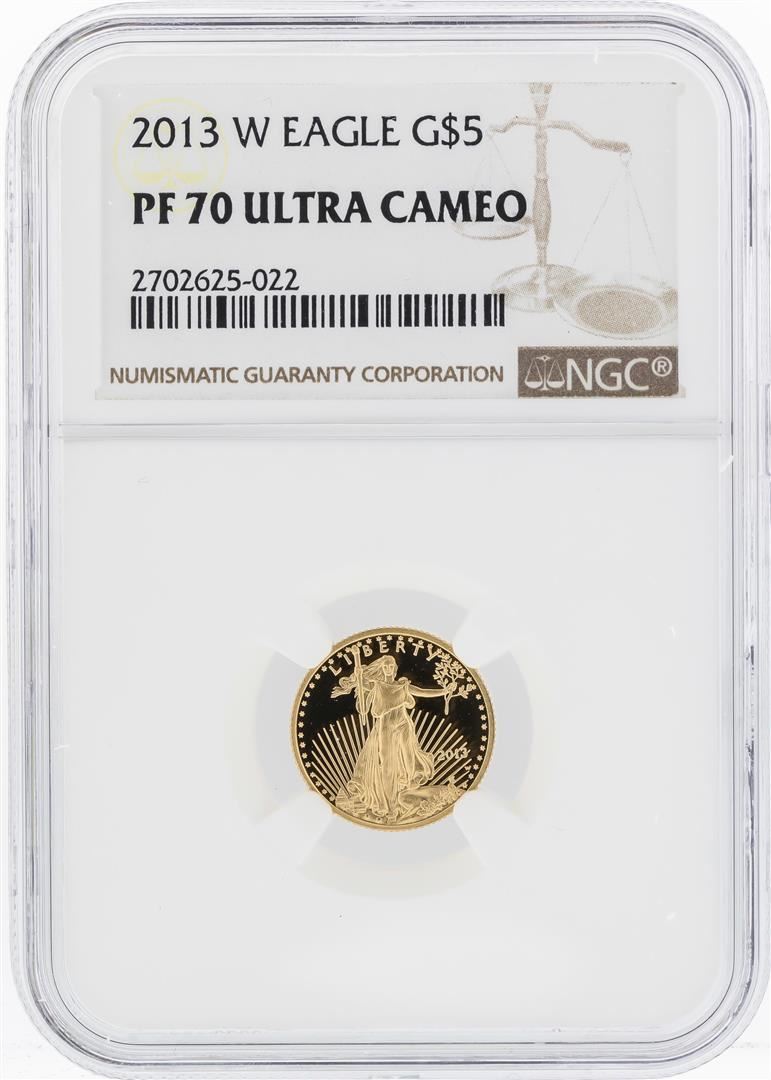 One 2013-W $5 American Gold Eagle Coin NGC PF70 Ultra Cameo. NGC Certified.