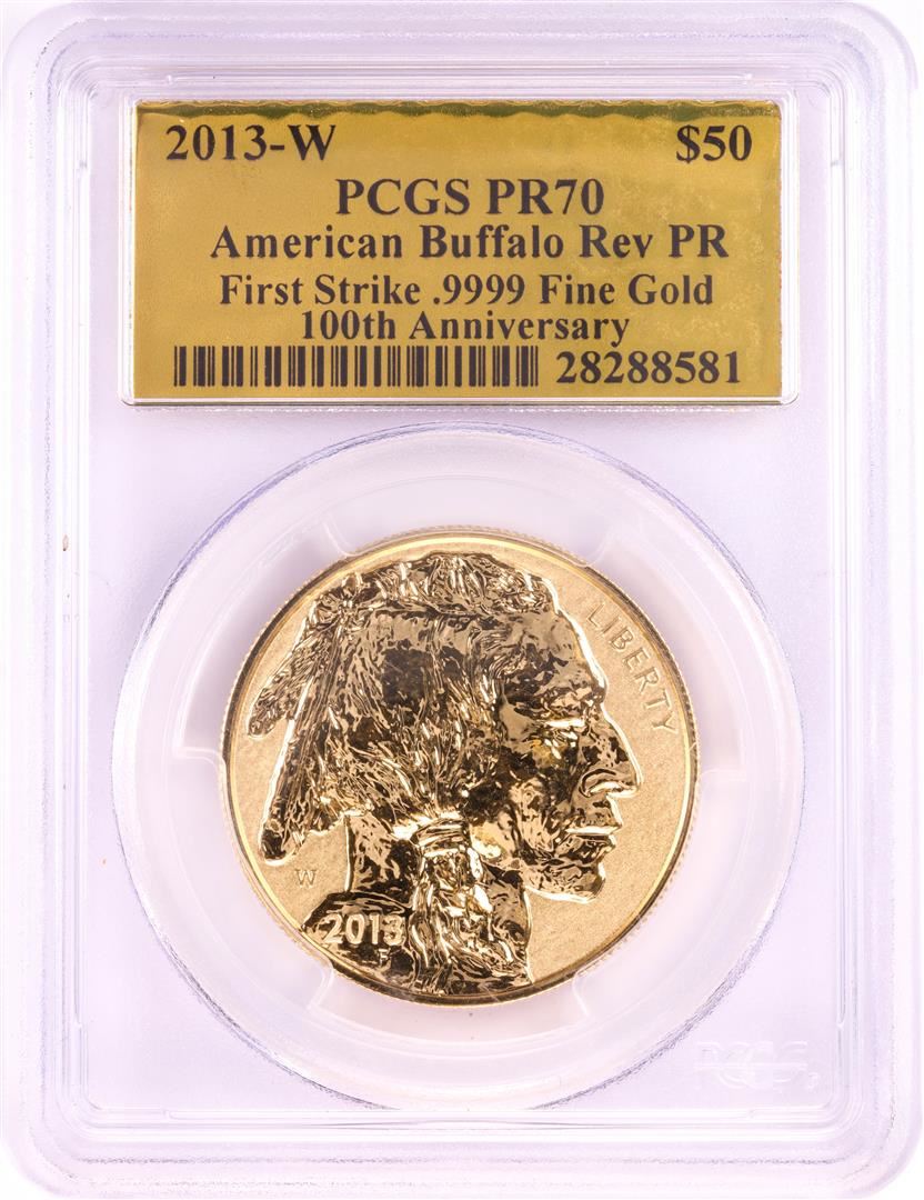 One 2013-W Reverse Proof $50 American Buffalo Gold Coin PCGS PR70 Gold Foil First Strike. PCGS Graded.