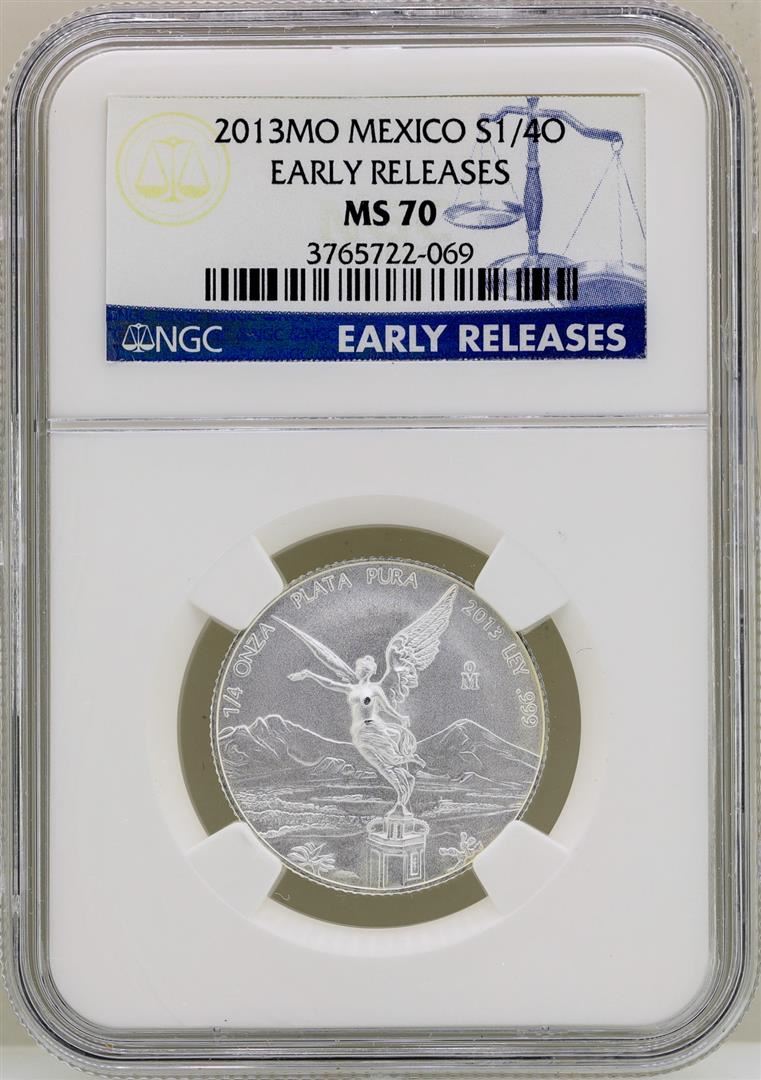2013MO Mexico 1/4 Onza Libertad Silver Coin NGC MS70 Early Releases
