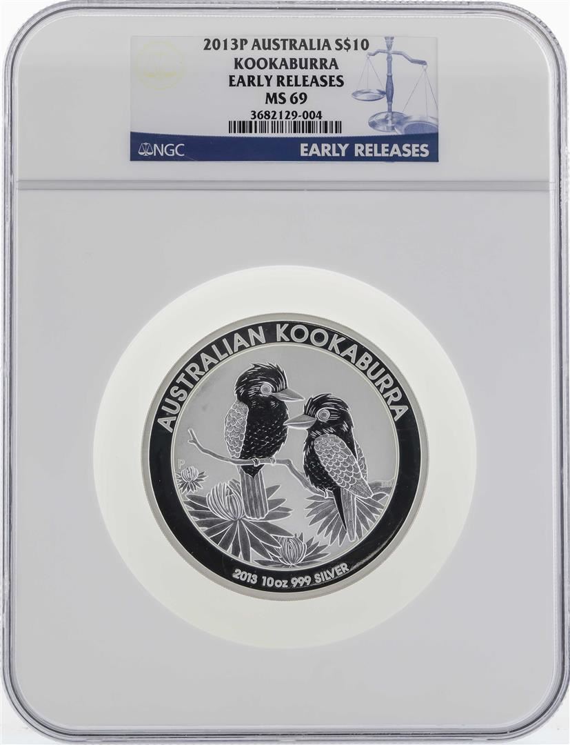 One 2013P $10 Australia Kookaburra Silver Coin NGC MS69. NGC Certified.