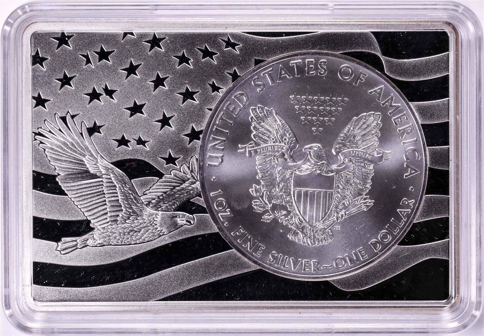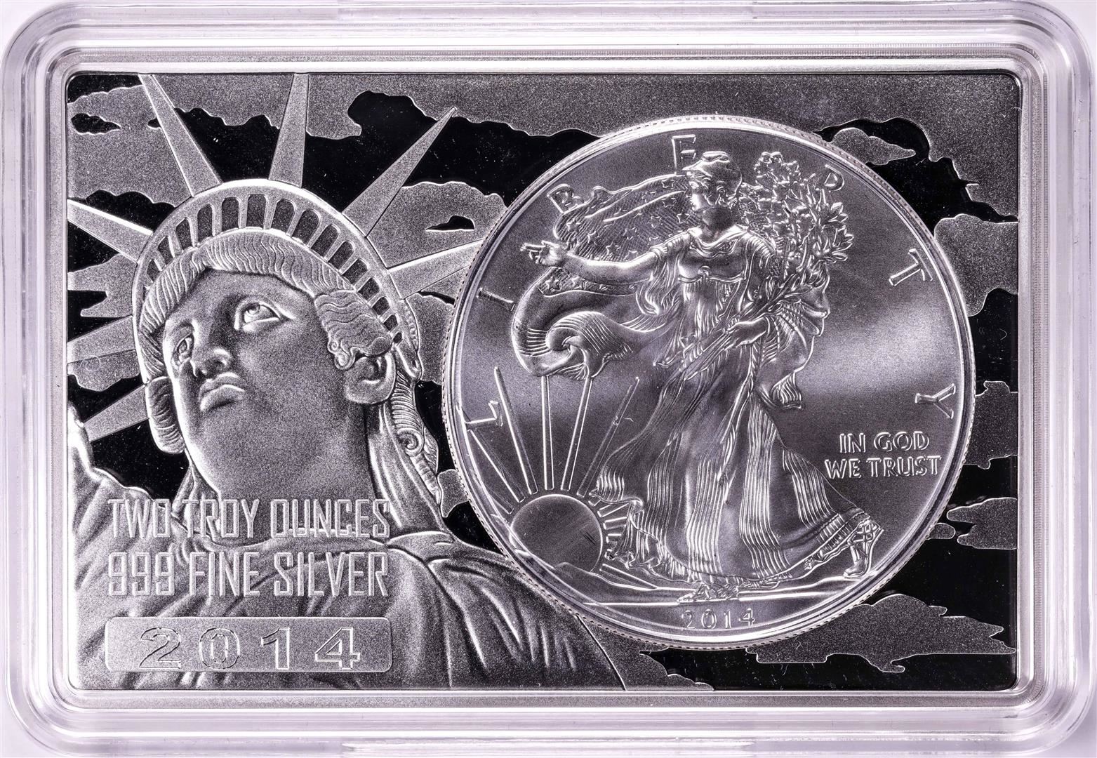 One 2014 $1 American Silver Eagle Coin & 2oz Silver Bar Set.