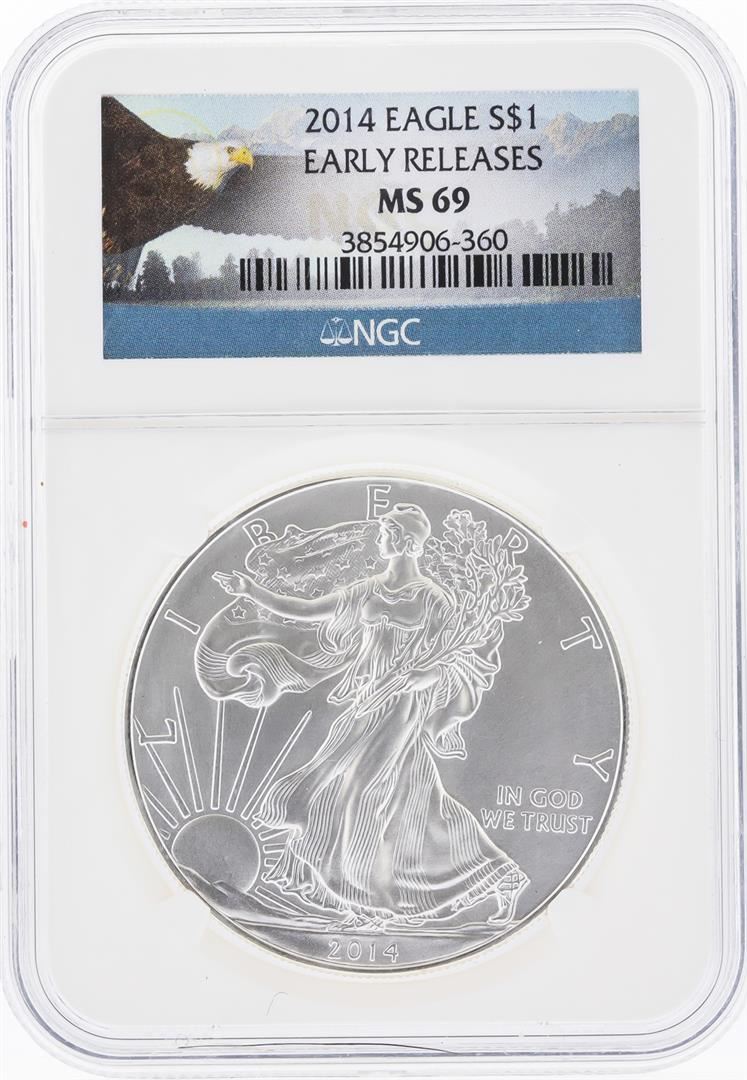One 2014 $1 American Silver Eagle Coin NGC Graded MS69. NGC Certified.