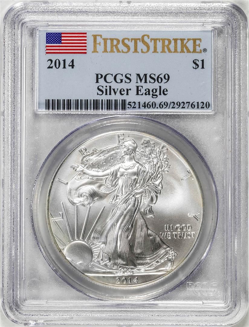 One 2014 $1 American Silver Eagle Coin PCGS MS69 First Strike. PCGS Graded.