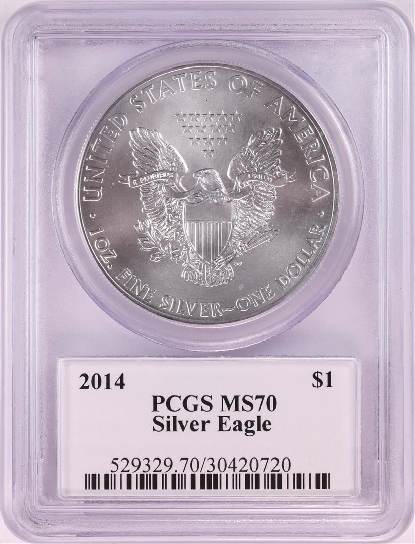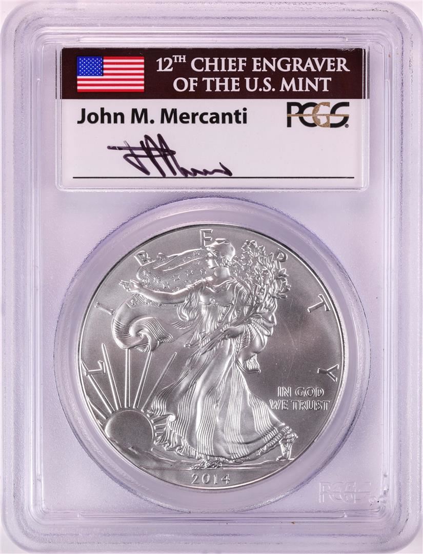 2014 $1 American Silver Eagle Coin PCGS MS70 John Mercanti Signature