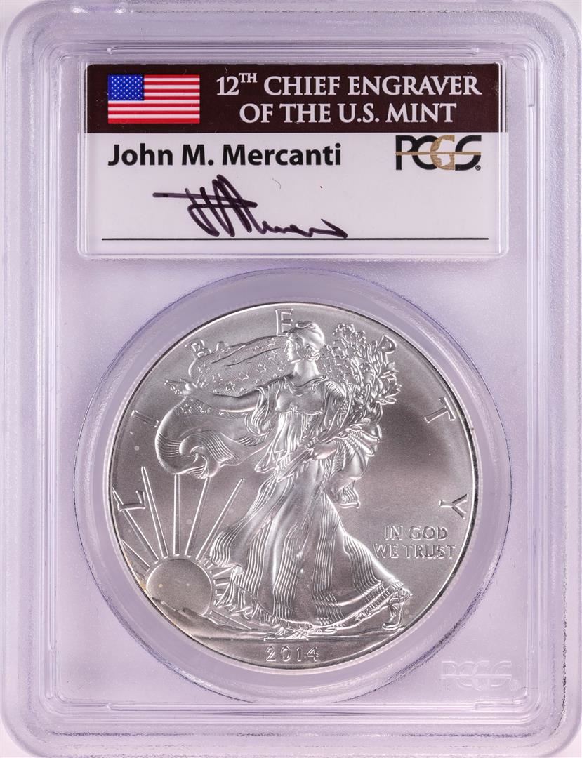 2014 $1 American Silver Eagle Coin PCGS MS70 John Mercanti Signature