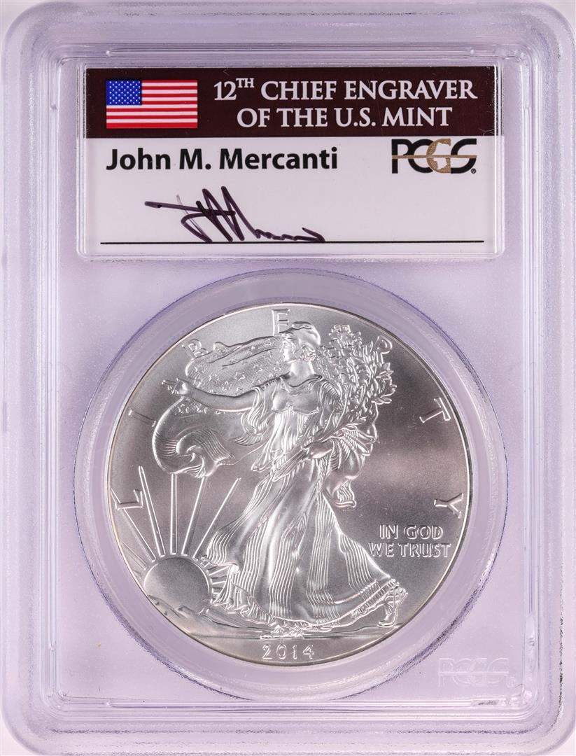 2014 $1 American Silver Eagle Coin PCGS MS70 John Mercanti Signature