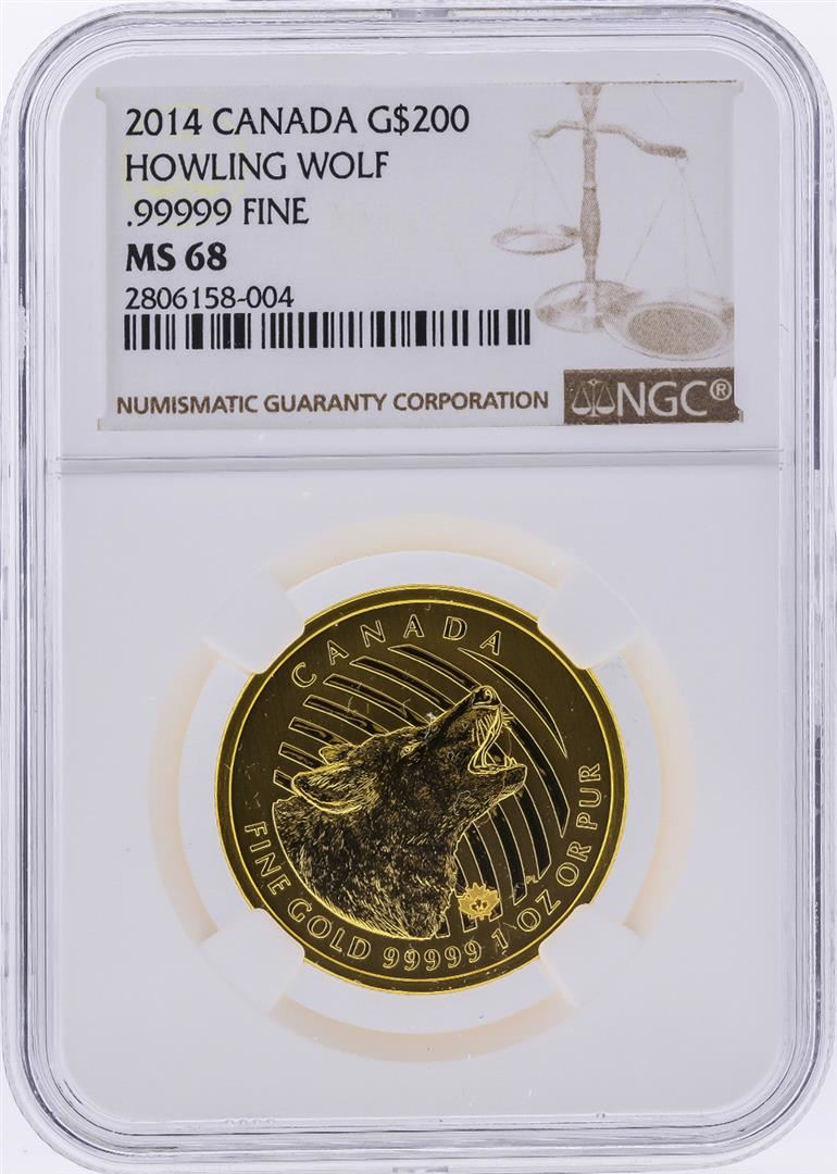 One 2014 $200 Canada Howling Wolf Gold Coin NGC MS68. NGC Certified.