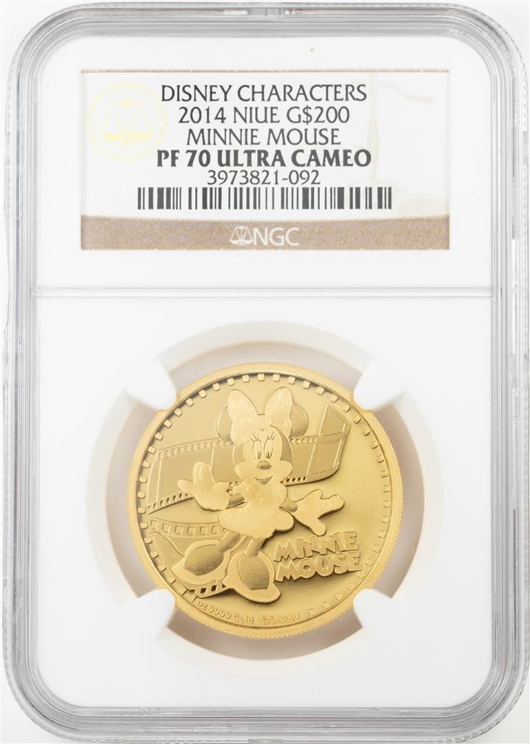 One 2014 $200 Proof Niue Disney Minnie Mouse Gold Coin NGC PF70 Ultra Cameo. NGC Certified.