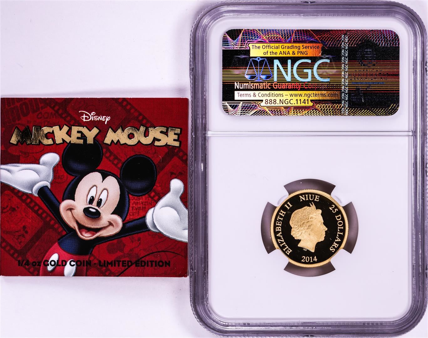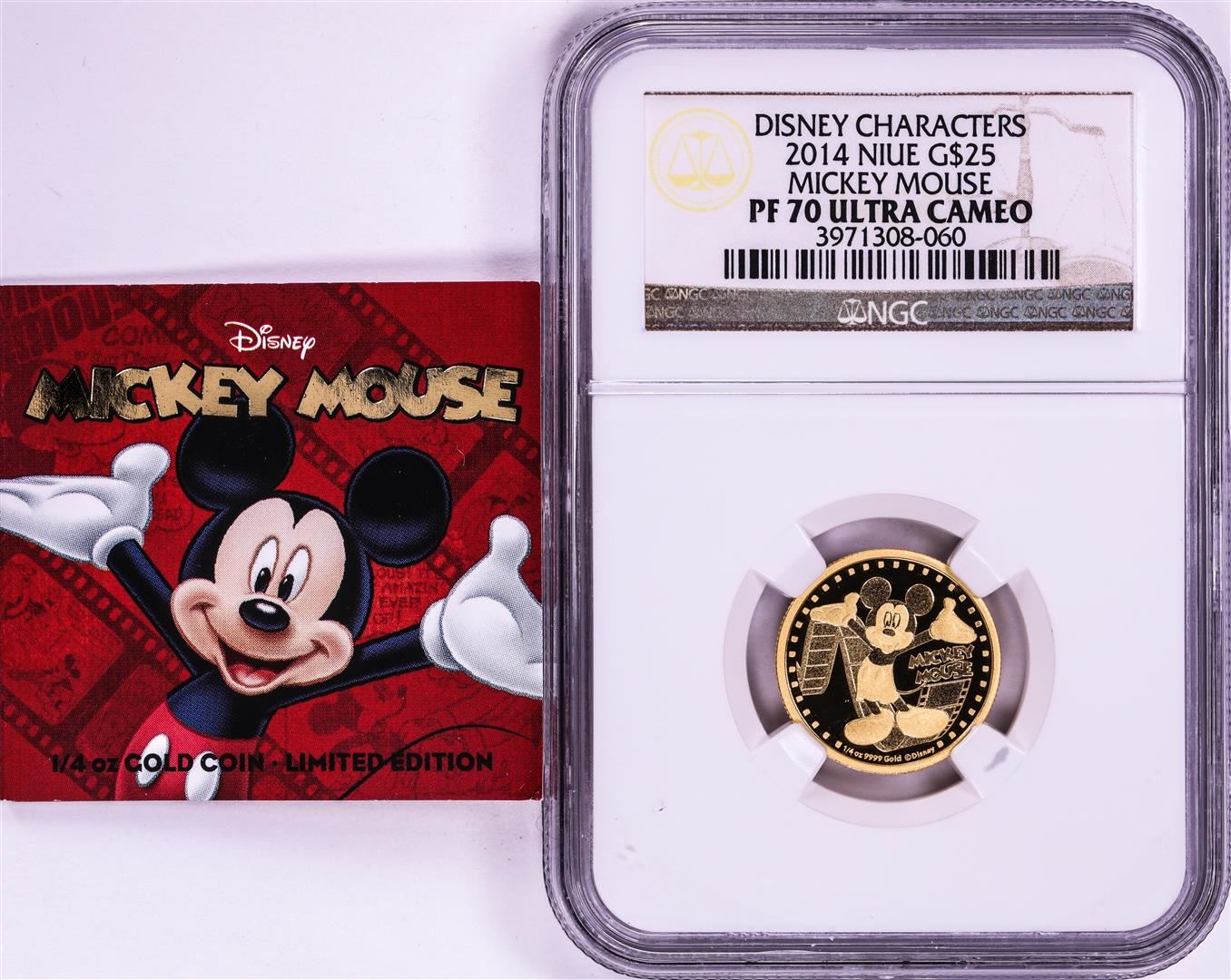 One 2014 $25 Proof Niue Disney Mickey Gold Coin NGC PF70 Ultra Cameo. NGC Certified.