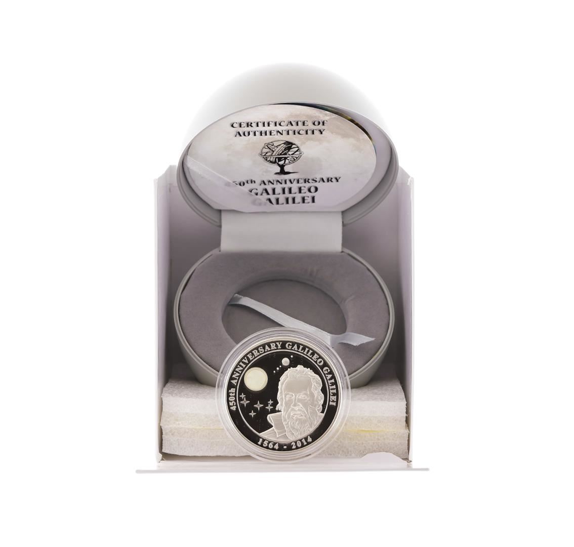 One 2014 450th Anniversary Galileo Galilei Cook Islands 2 oz Silver Proof Coin.