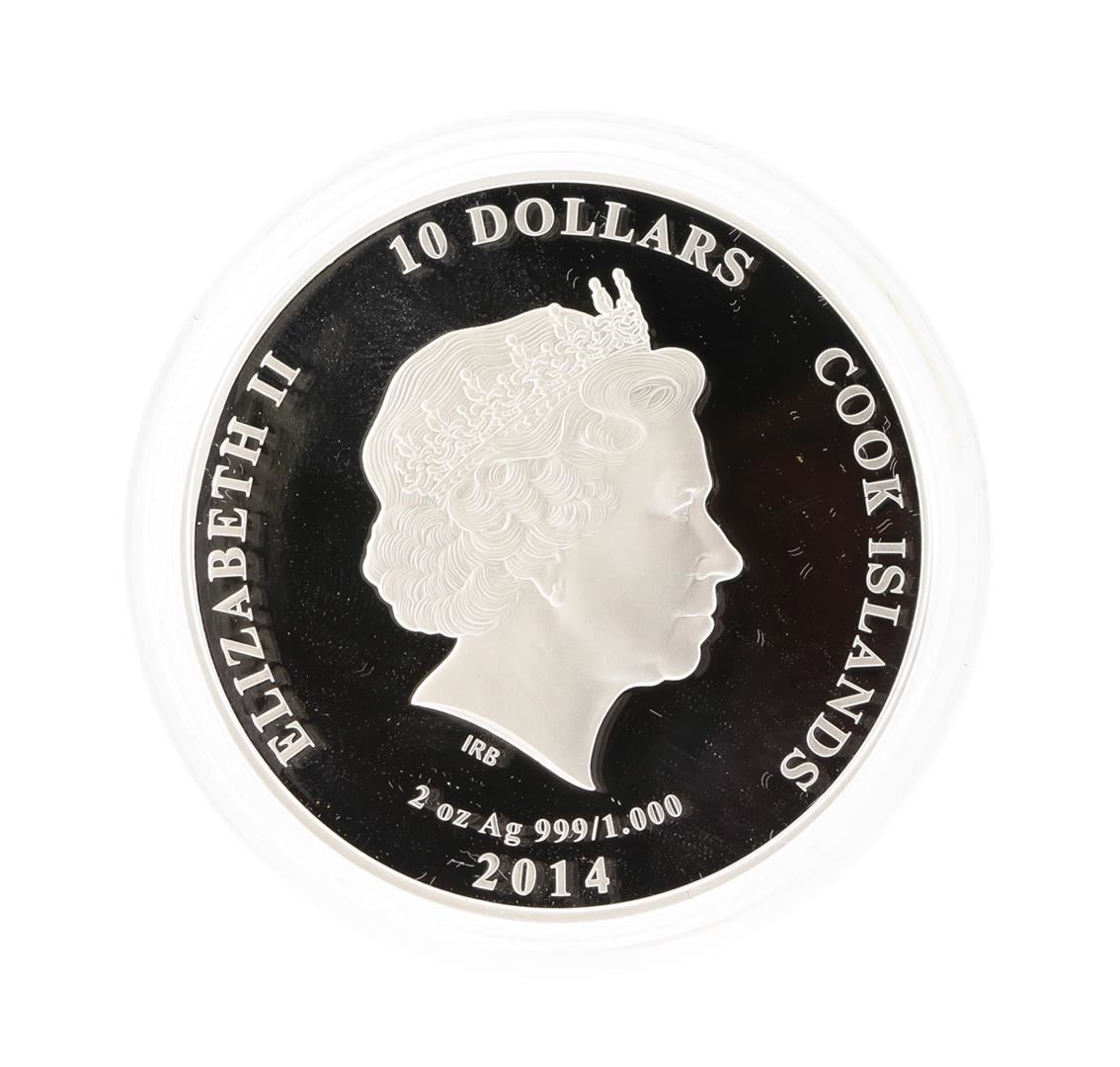 One 2014 450th Anniversary Galileo Galilei Cook Islands 2 oz Silver Proof Coin.