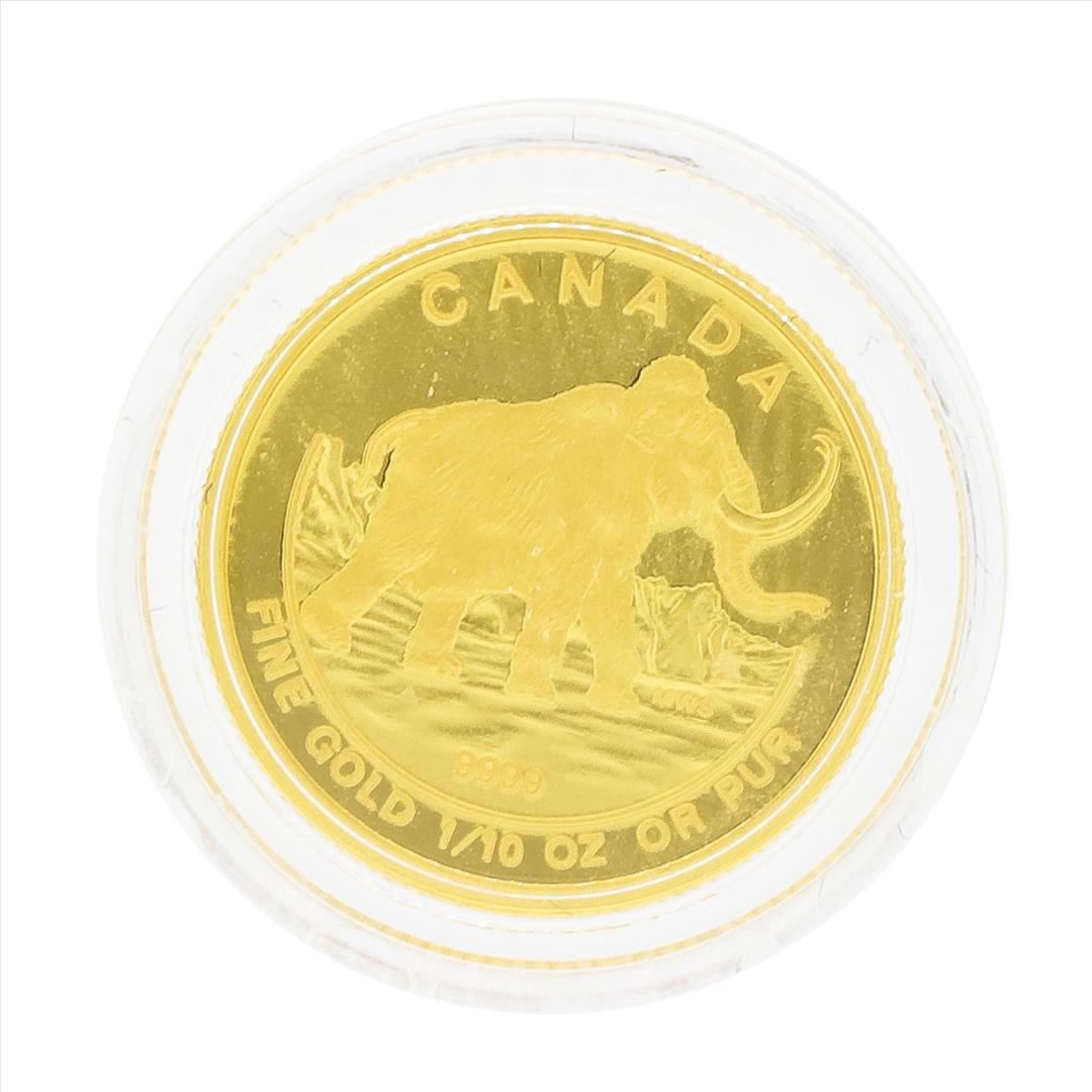 One 2014 $5 Canada 1/10 oz Woolly Mammoth Gold Coin.