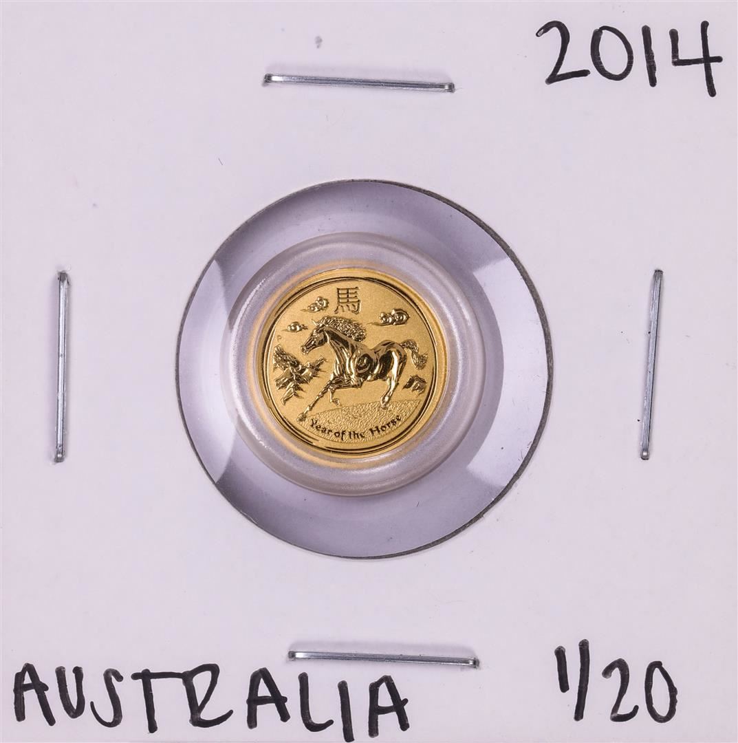 One 2014 Australia $5 Lunar Year of the Horse 1/20 Oz Gold Coin.