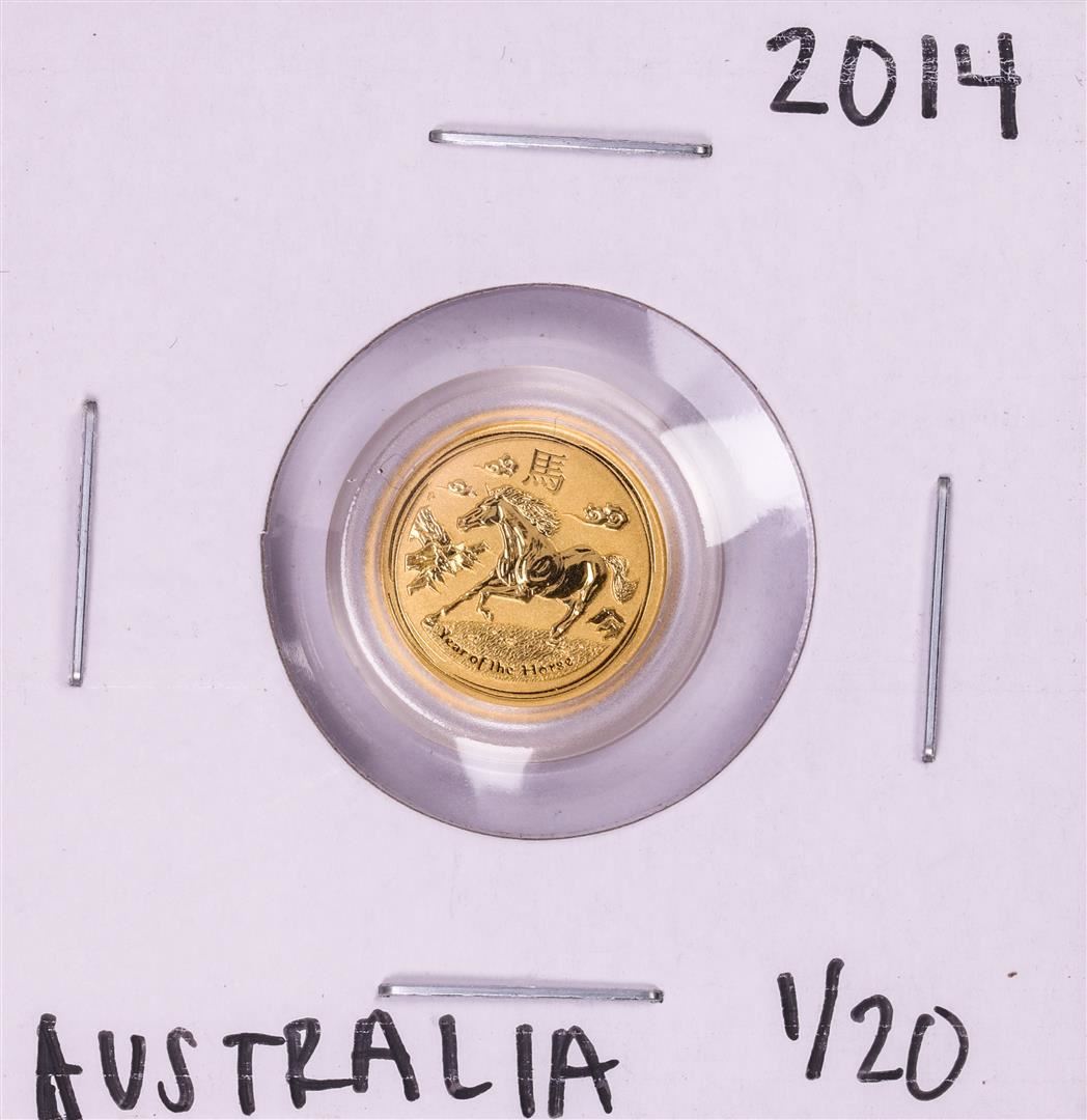 2014 Australia $5 Lunar Year of the Horse 1/20 Oz Gold Coin