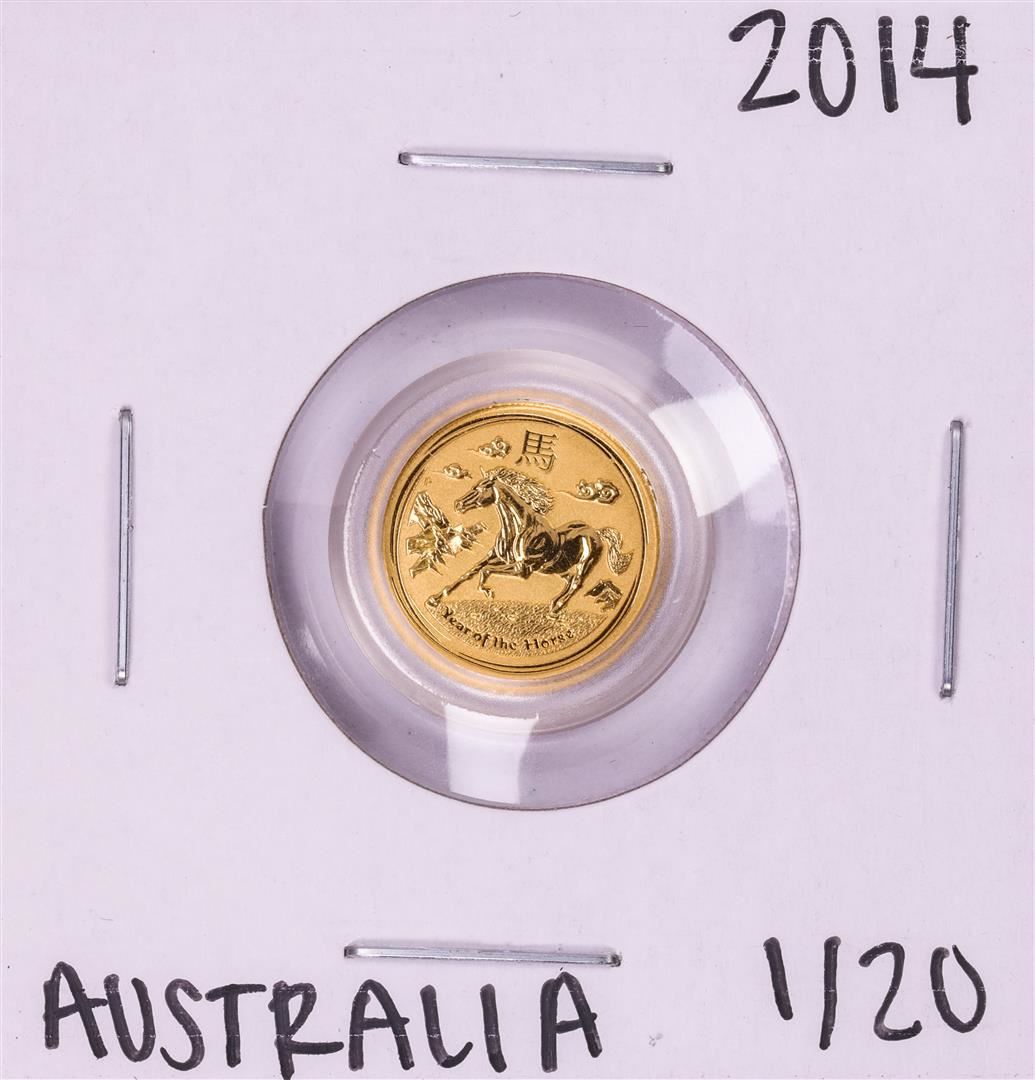2014 Australia $5 Lunar Year of the Horse 1/20 Oz Gold Coin