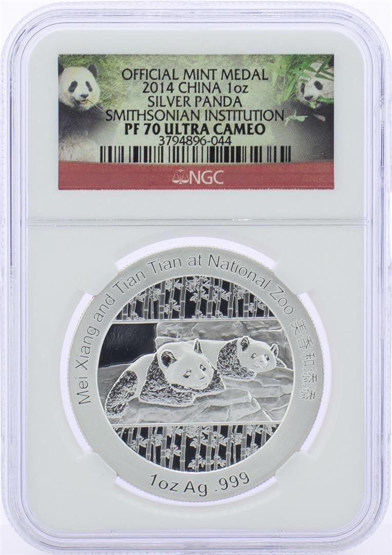 One 2014 China Silver Panda Smithsonian Institution Medal NGC PF70 Ultra Cameo w/Box & COA. NGC Certified.