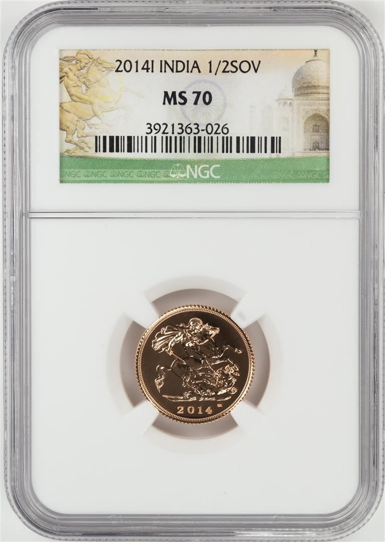 One 2014-I India 1/2 Sovereign Gold Coin NGC MS70. NGC Certified.