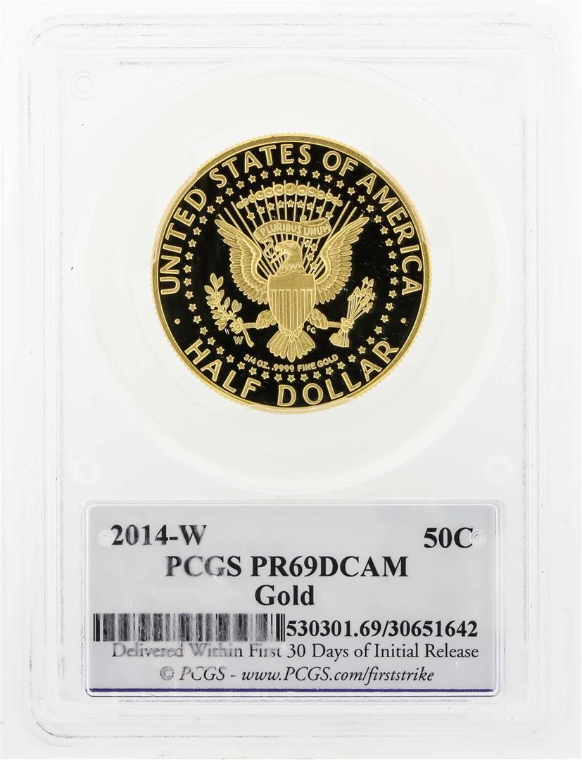 One 2014 John F. Kennedy Gold Half Dollar Coin PCGS PR69DCAM. PCGS Graded.