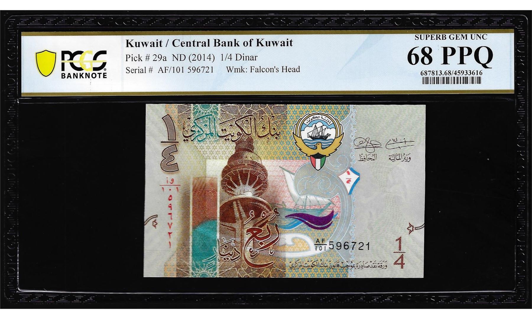 2014 Kuwait 1/4 Dinar Note Pick# 29a PCGS Superb Gem Uncirculated 68PPQ