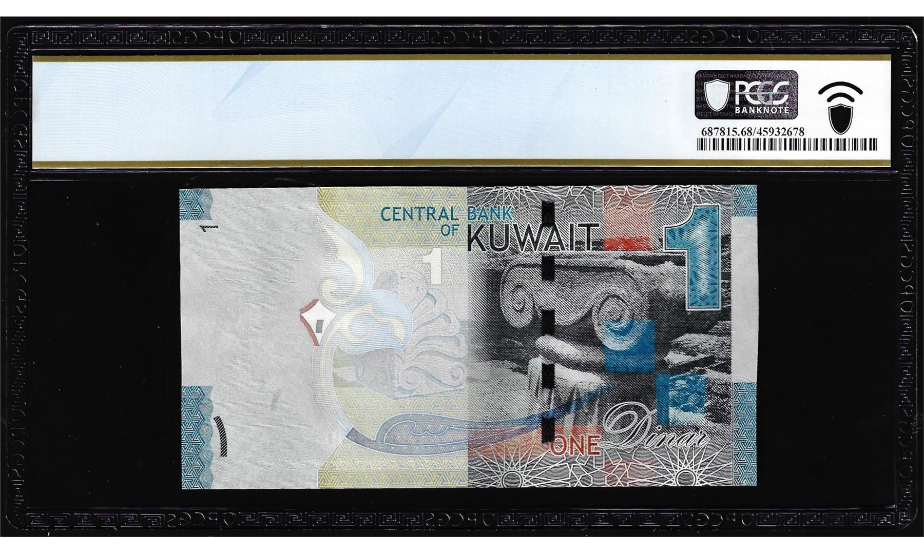 One 2014 Kuwait 1 Dinar Note Pick# 31a PCGS Superb Gem Uncirculated 68PPQ. PCGS Graded.