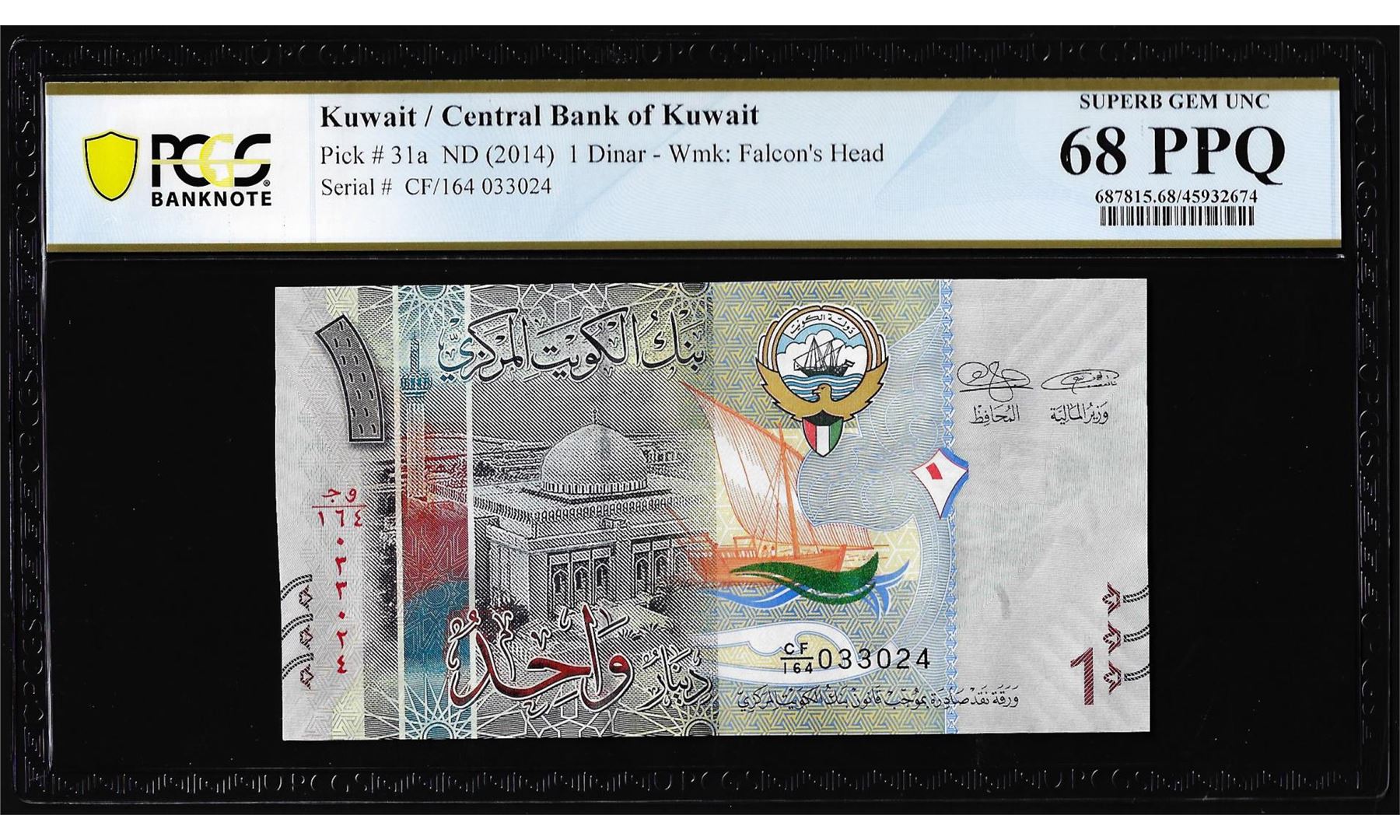 2014 Kuwait 1 Dinar Note Pick# 31a PCGS Superb Gem Uncirculated 68PPQ