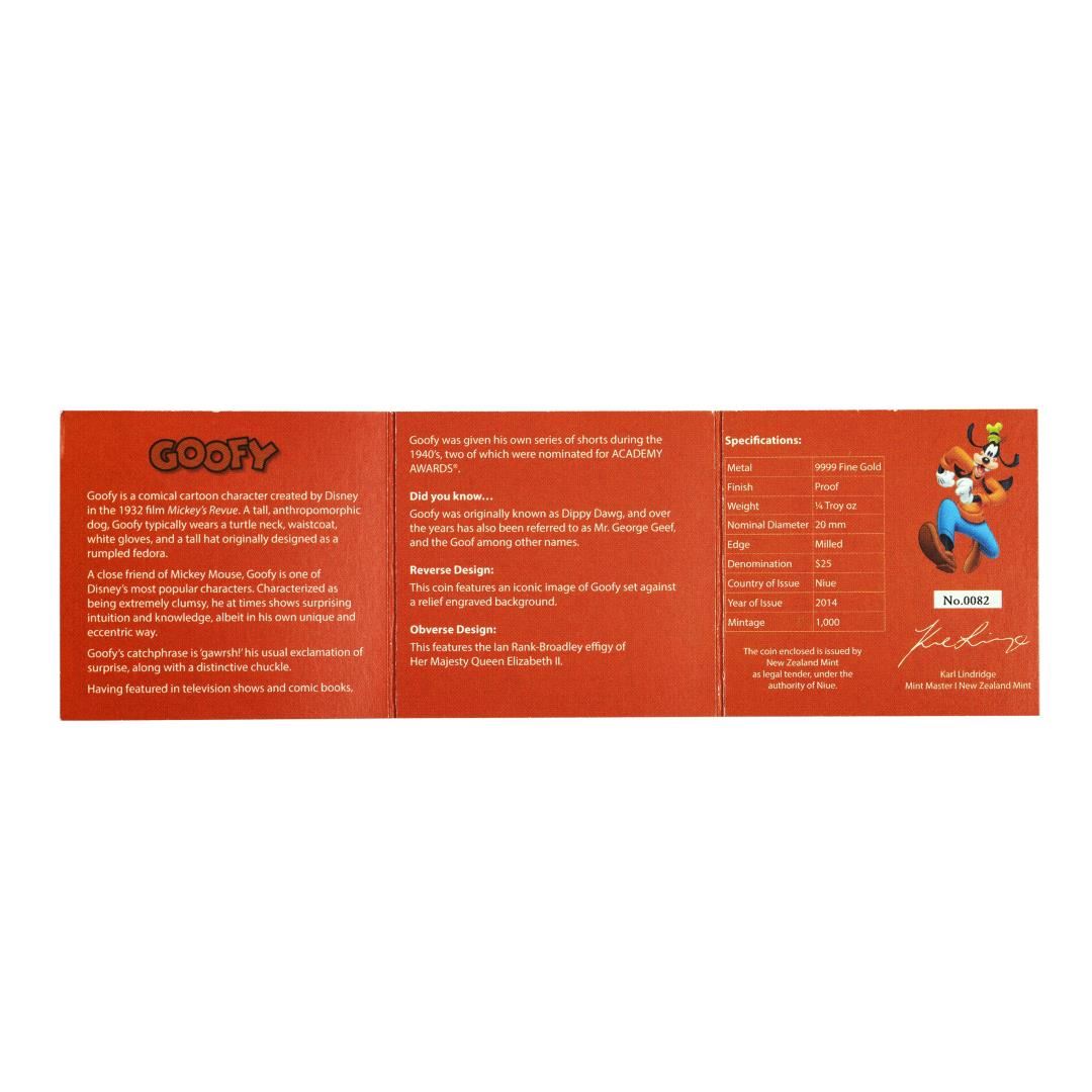 One 2014 Niue $25 Proof Disney Characters Goofy Gold Coin NGC PF70 Ultra Cameo W/ COA. NGC Certified.