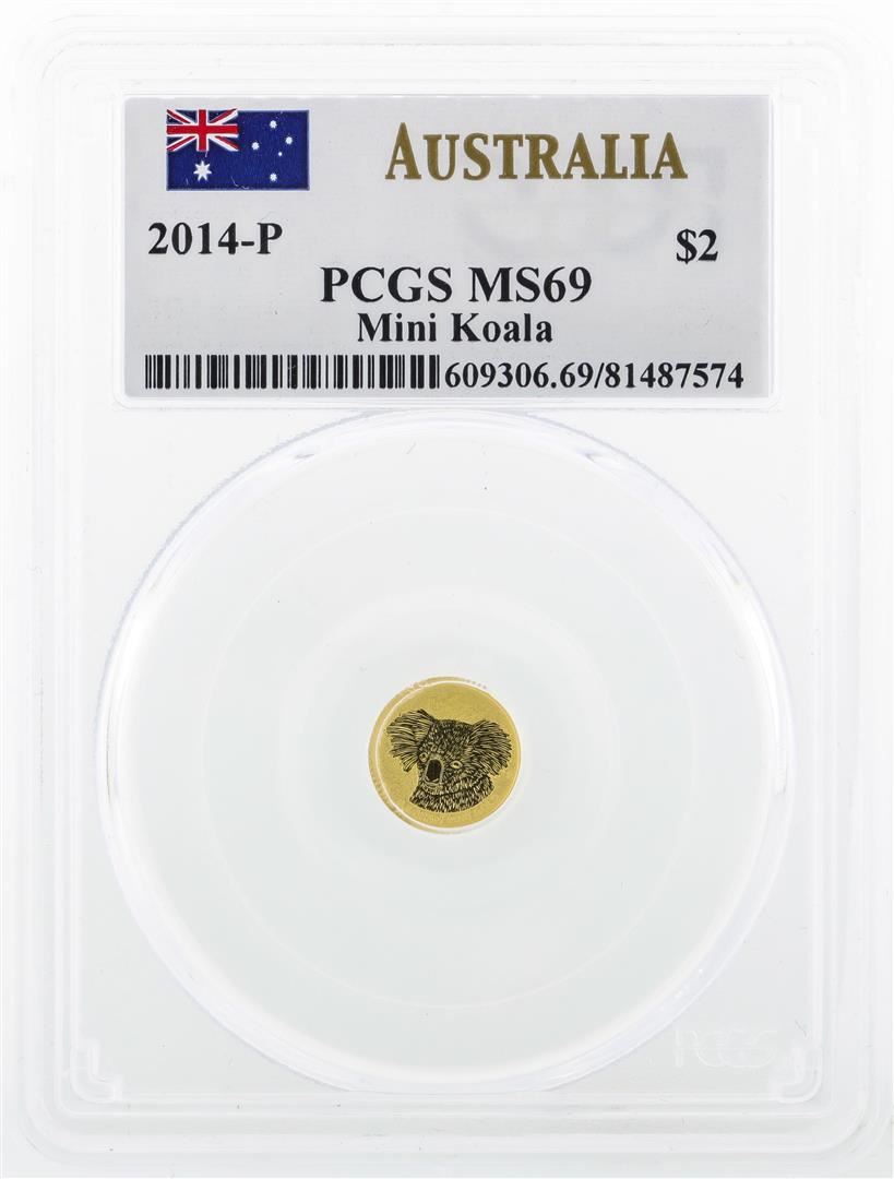 One 2014-P $2 Australia Mini Koala Gold Coin PCGS MS69. PCGS Graded.
